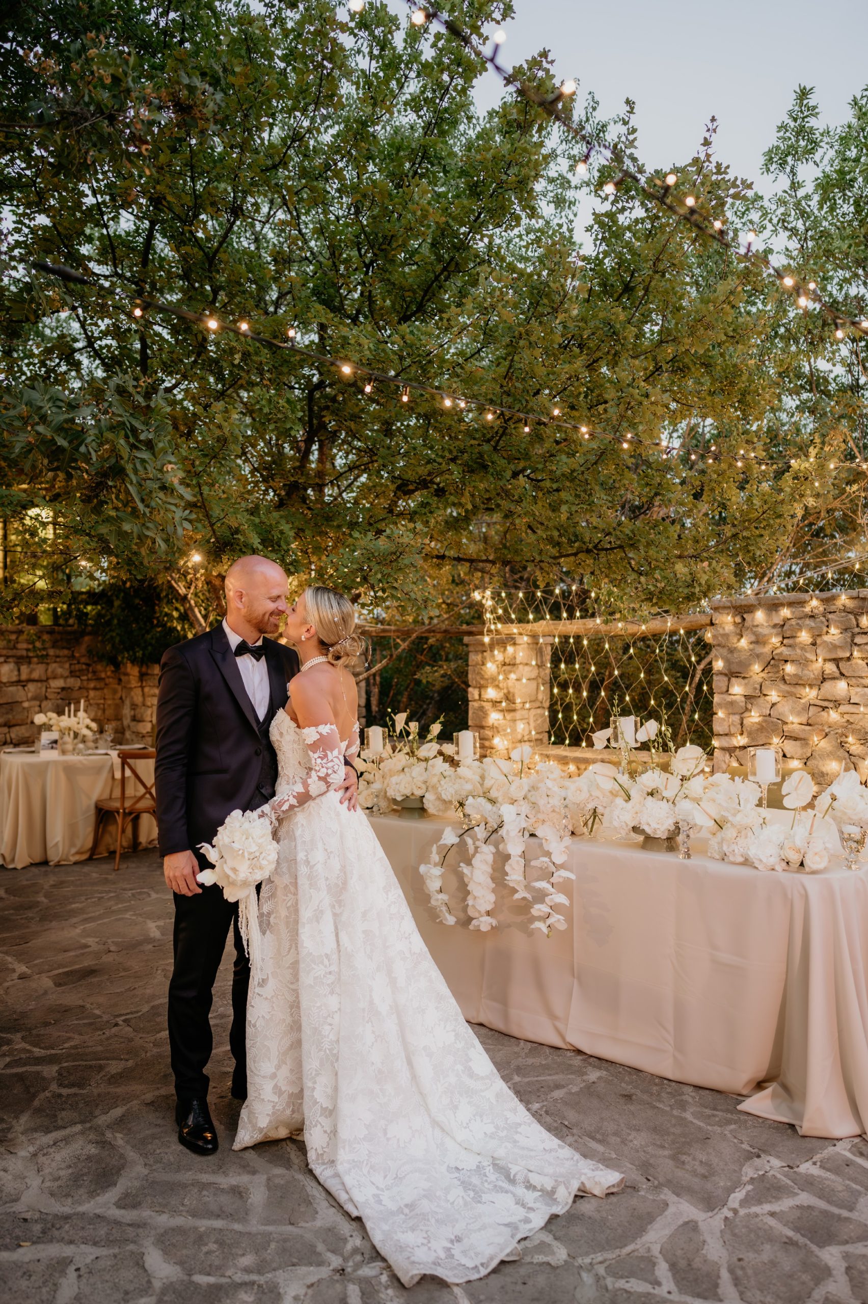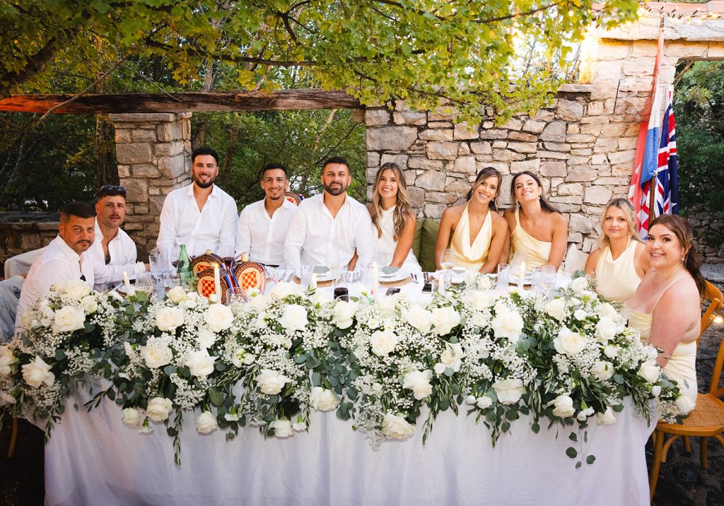 You are hiring an exclusive retreat with 3 nights accommodation for 42 people and two exclusive gardens for your ceremony and recepion in lush Mediterranean gardens and pools. Your wedding party will enjoy a superior Croatian culinary experience with welcome drinks, delicious buffet, a generous open bar that inlcudes premium drinks and wines and a live musical performance by a professional DJ and saxophone combination. An intimate celebration on the beautiful Dalmatian coastline, exclusive, classy, authentic and timeless!