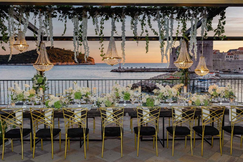 Our Dubrovnik Heritage proposal brings together two wonderful venues full of Croatian character and history. Sponza Palace is a 16th century palace at the heart of the city and it’s stunning atrium is the perfect setting for your wedding ceremony which has also featured in Game of Thrones.