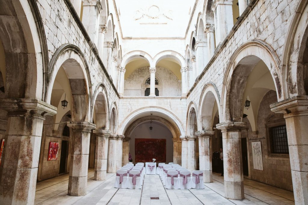 - Civil wedding ceremony to take place at the historic Sponza Palace at the heart of old town Dubrovnik (3 hours venue hire including set up and cleaning)