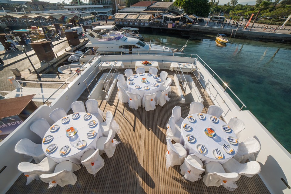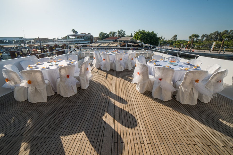 You will enjoy a coastline cruise, then anchor in a bay where you will enjoy a delicious wedding buffet. After the meal, we can arrange a DJ or you can provide your own music and dance