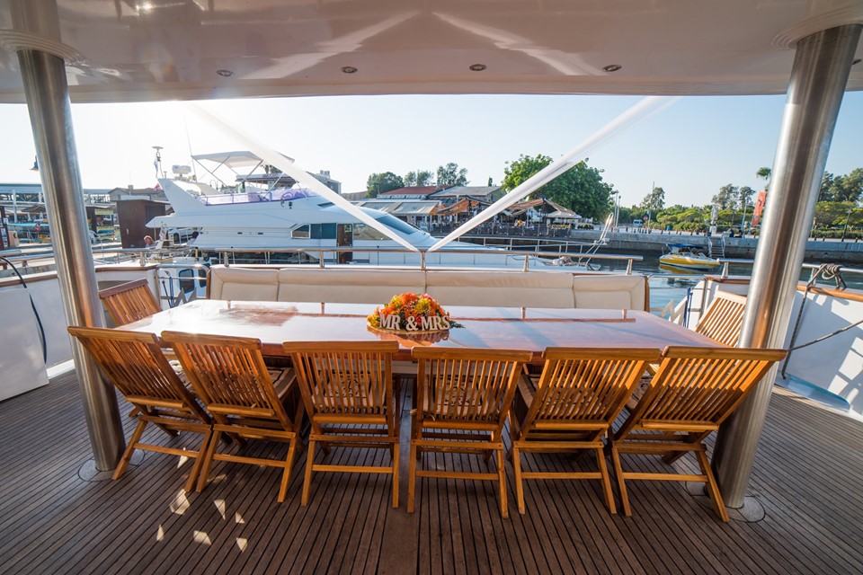 Exchange your wedding vows on-board this elegant mega yacht, then sail off into the sunset for a wedding reception like no other!