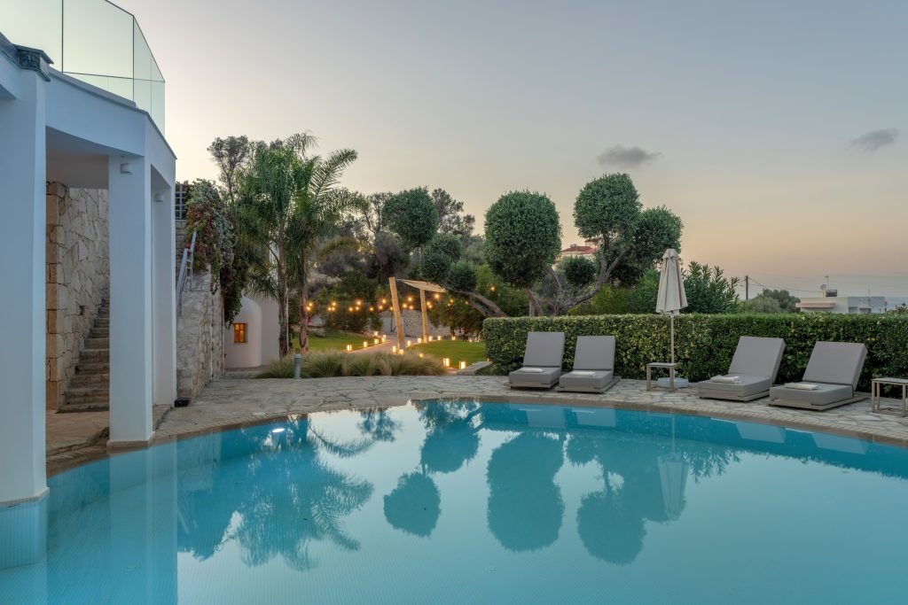 Set in the lush Rethymno hills, the Cretan Villa combines magnificent sea and countryside views, privacy and it’s the perfect place for your stay and wedding in Crete. The property has been renovated to a very high specification offering contemporary accommodation for up to 12 guests over 6 en-suite bedrooms, outdoor pool, indoor spa and gym, indoor and outdoor dining areas, BBQ area, spacious verandas and versatile living areas.