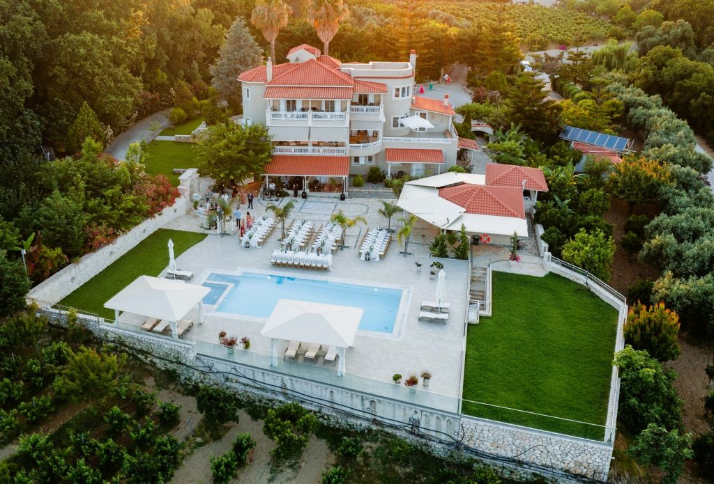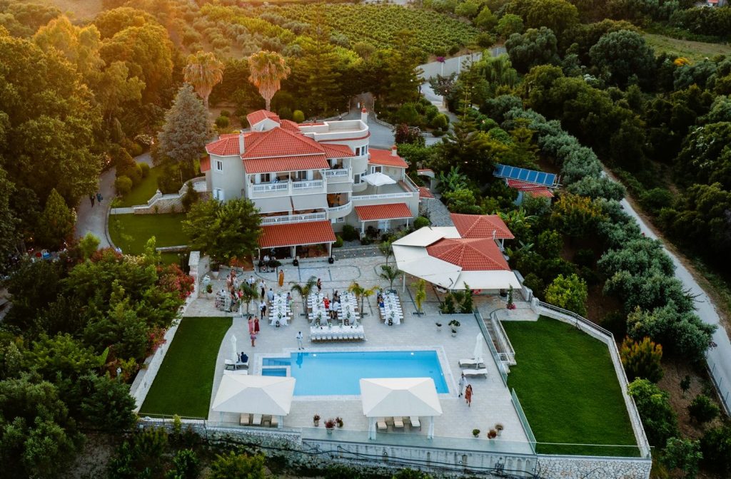 The Luxury Residence villa is located in the south of the island, 1km from the beach. Our proposal includes accommodation at this luxurious villa for 7 nights for 18 people. Thanks to its flexible occupancy, smaller and larger groups can also be accommodated. Surrounded by 5 acres of impressive land, a vineyard, olive trees and manicured gardens.