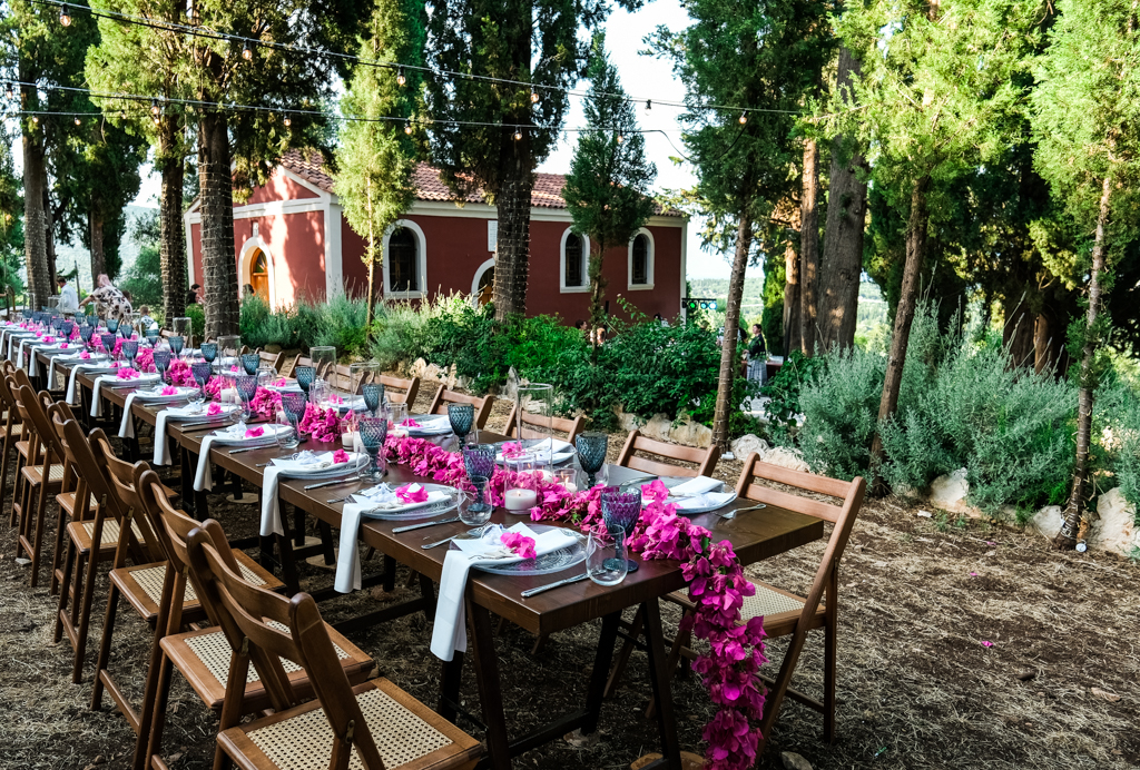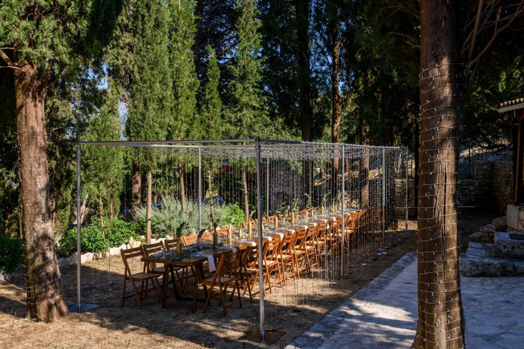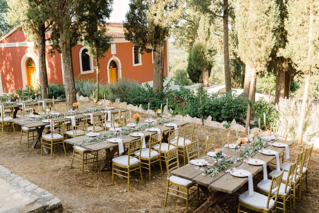 The ultimate rustic venue in the heart of the island surrounded by cypresses and nature, wow! Serene and tranquil away from the hassle and bustle, the Kefalonia Rustic Chapel is a completely private venue where you can party until the early hours. If you are looking for rustic authenticity complemented by beautiful prepared and served catered dinner of your choice, look no further. This wedding itinerary gives you the flexibility and convenience of a private wedding and reception with professional catering at the same place at one of the most romantic settings in the Med.