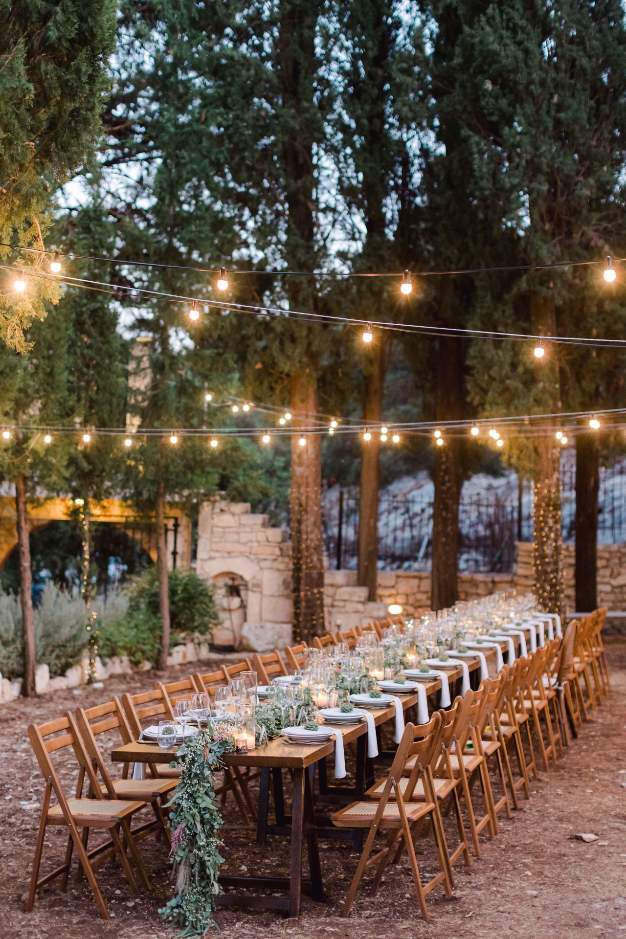 - Festune lights above dinner area, 8 sets of fairy lights around dinner area trees and fairy light curtain under the kiosk