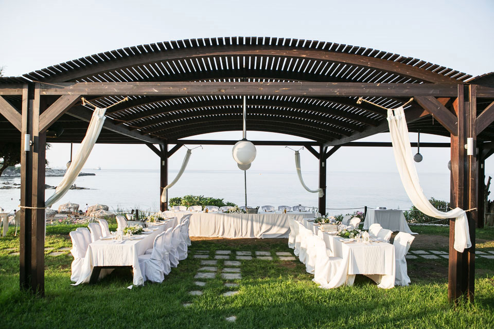 This venue and location is one of the most exclusive and beautiful venues to get married in Rhodes. Built around an ancient Italian Spa, this venue was once world wide famous for its healing waters. Your wedding ceremony will take place in the Rotunda to ensure full exclusivity and privacy for your special day. As a whole the venue offers a fabulous mix of manicured gardens and scenic sea views to provide you with the perfect back drop for your wedding photos. After the ceremony your wedding party will move on to the nearby taverna in Kallithea Bay. Due to its perfect location you can relax and enjoy your reception meal over looking the calm and tranquil Mediterranean sea.