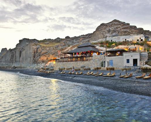 Santorini is an island of contrasting colours. There are many black sandy beaches such as Perissa, Vlihada and Kamari, the red sand beach of Akrotiri and the more secluded Columbo, Baxedes and Ammoudi. The white traditional Cycladic houses and blue-domed churches built on the black volcanic rock is a sight you will never forget.
