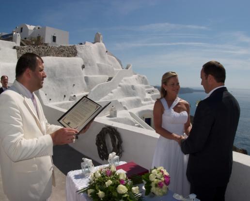 - Civil wedding ceremony at a traditional Santorini chapel