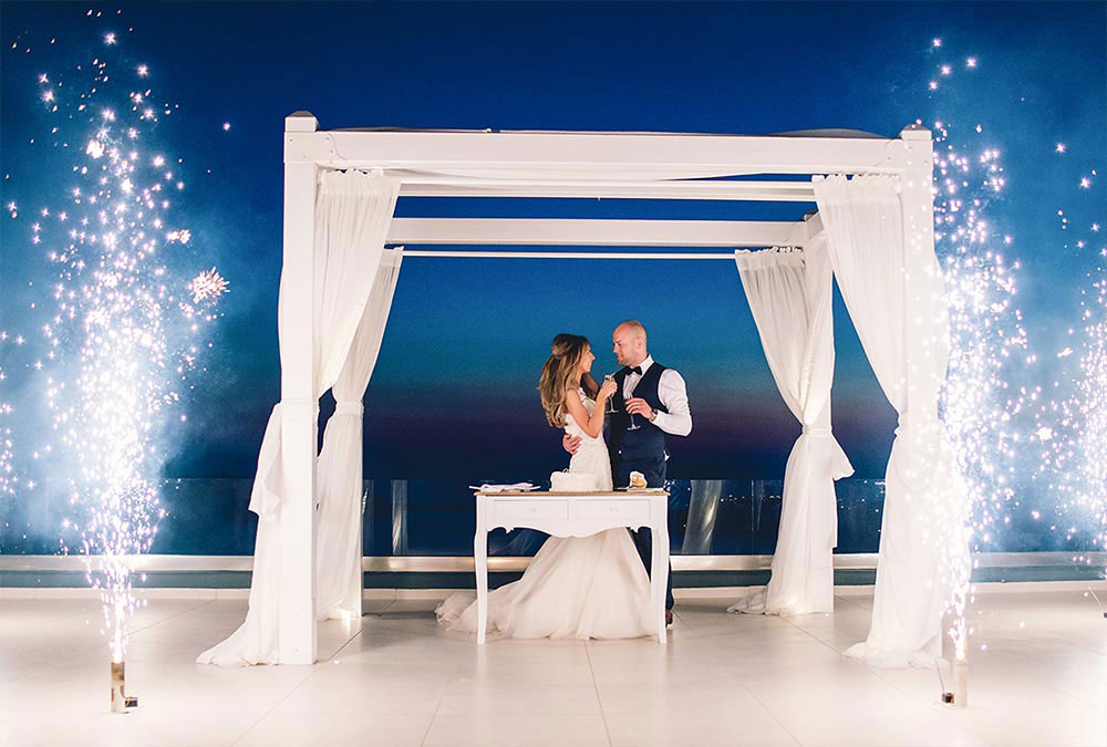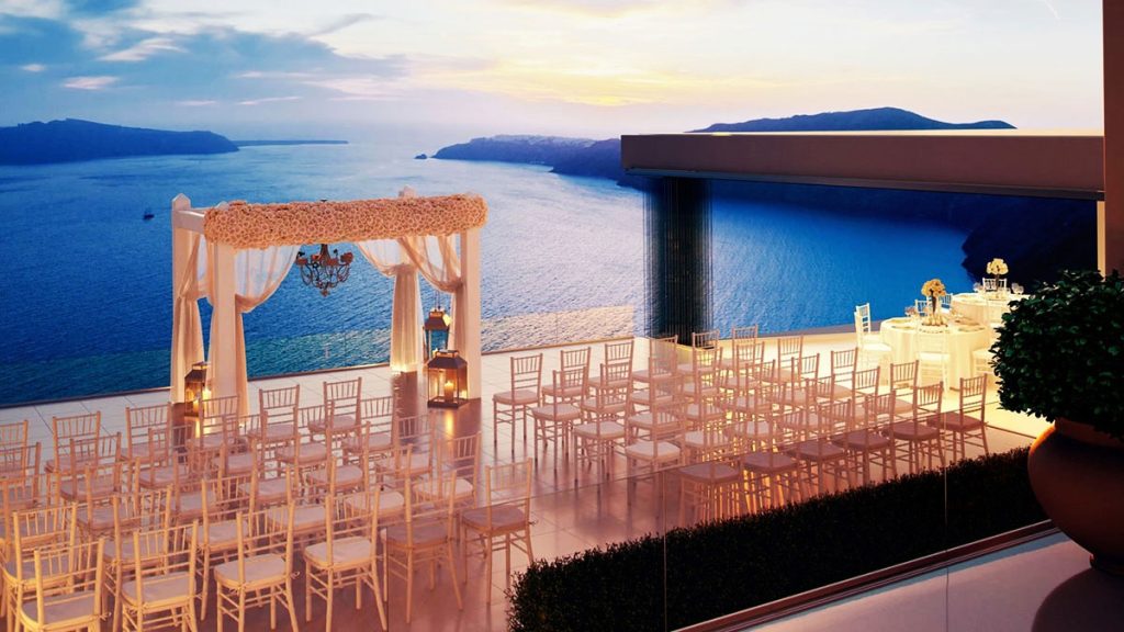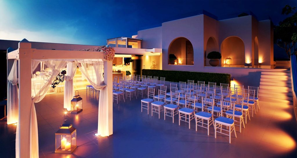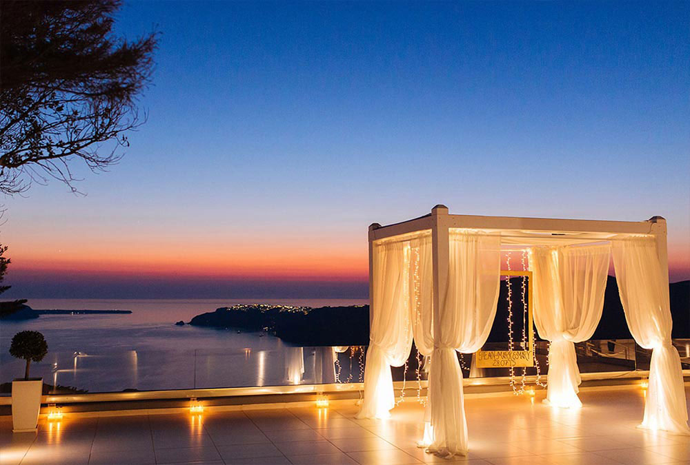 Your Wedding in Santorini needs the Perfect Wedding Venue. Paradise Terrace offers elegant indoor and outdoor spaces and a delicious choice of Wedding Menus. The Wedding Ceremony is held on the spectacular Caldera view terrace overlooking the Volcano and the Aegean Sea.