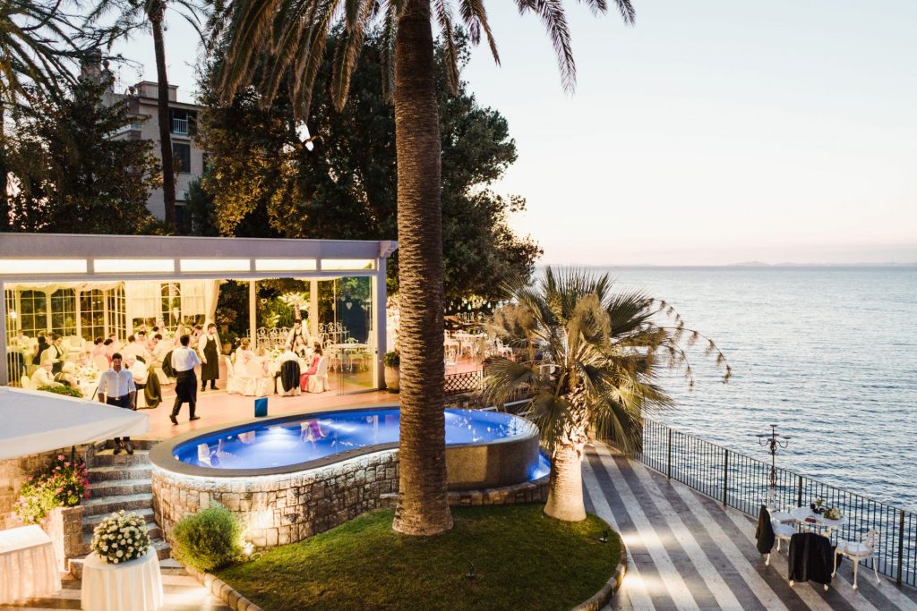 After the ceremony we will transport you and your guests to the privately hired Sea View Villa, located in one of the most sought after positions in Sorrento, with expansive views of the Bay of Naples and Mount Vesuvius and exclusive for your wedding party. On arrival, the staff will welcome you with cocktails and canapes. Dinner is served on the sea view terrace, decorated with drapes and starry sky lights decoration. A DJ is booked for the after party. We can also set up a pizza buffet and ice cream cart for later on in the evening, please ask us for details.