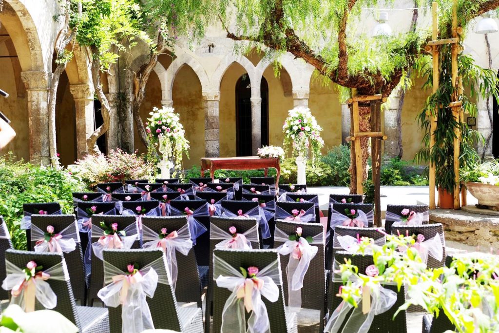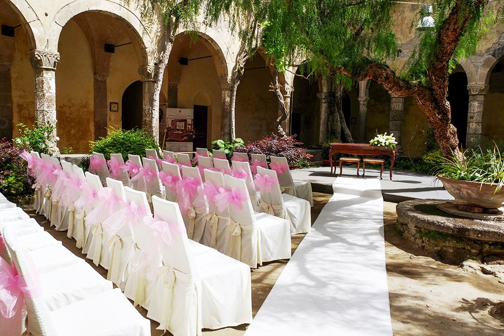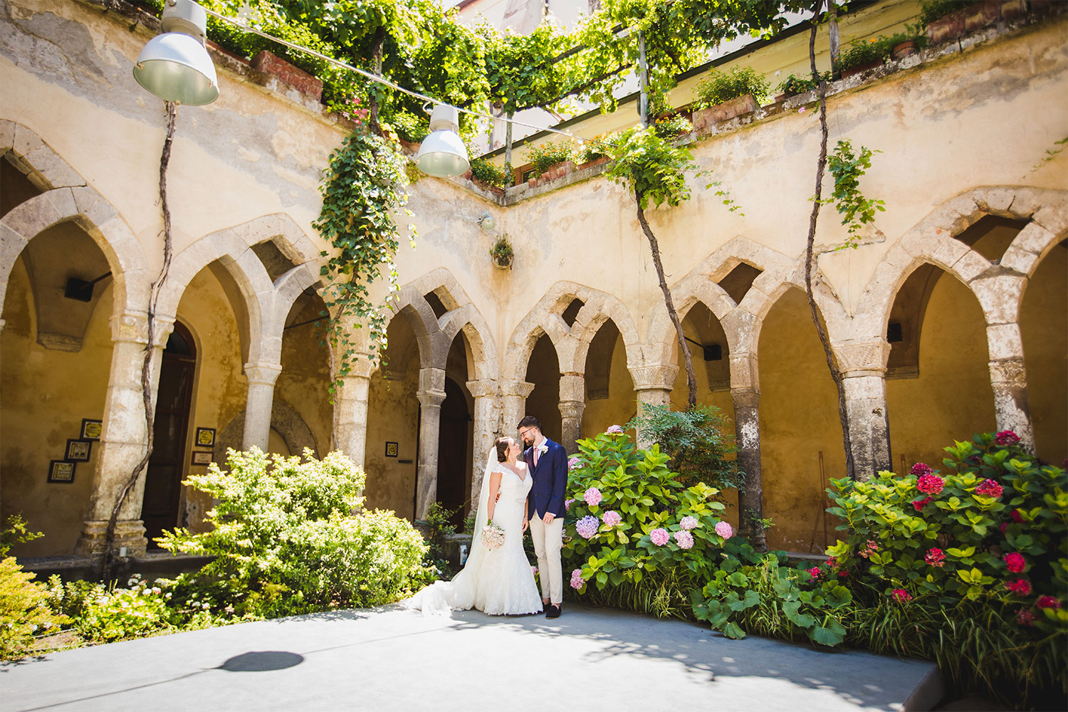 The 14th Century Cloisters is located in the heart of Sorrento. The idyllic wedding venue is one of the most tranquil spots in Sorrento because it is adjacent to the gardens of the Baroque San Francesco Church. The inside of the Cloisters is well known for its romantic architecture and traditional Italian rustic greenery.