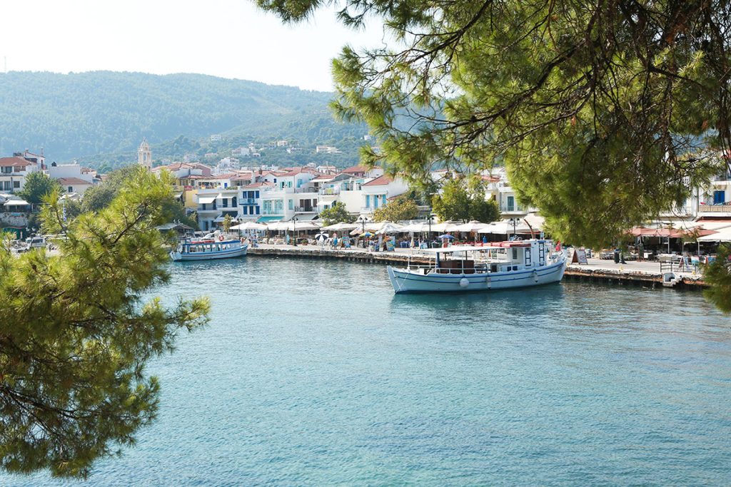 The Skiathos Bourtzi is located in the heart of Skiathos Town. The famous Skiathos Town offers a magical ambience with enchanting cobbeled streets to explore, perfect for your after ceremony photographs. The Bourtzi is situated on a small peninsula which divides the Ports into two distinct locations, the Old and the New. Your ceremony will take place on a secluded terrace, high above the pine trees, with panoramic sea views. The perfect setting for a traditional Greek wedding.