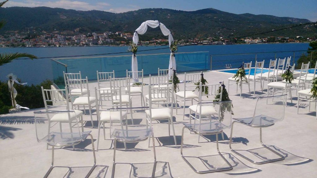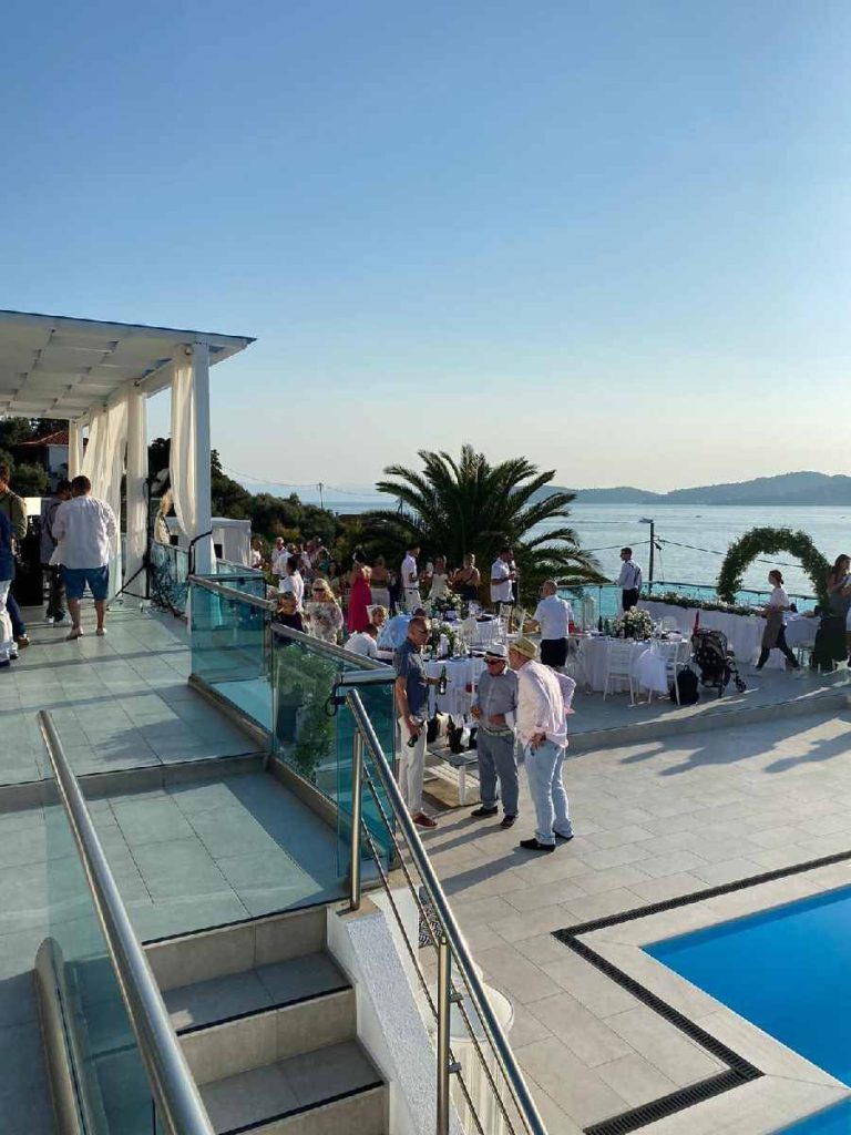 Cape View villa is one the best properties on the island and offers wonderful views of Skiathos town, the bay and the mountains! Your ceremony will be completely private for you and your guests and once they arrive by boat at the villa’s private jetty, you can all enjoy a glass of bubbly. The proposal includes accommodation for 7 nights for 12 people.