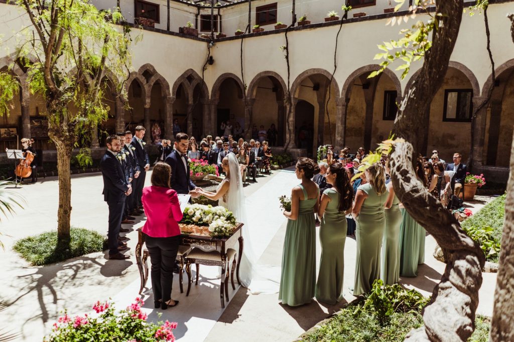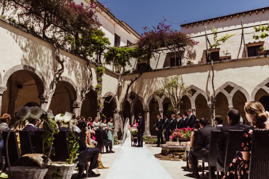 The 14th Century Cloisters is located in the heart of Sorrento. The idyllic wedding venue is one of the most tranquil spots in Sorrento becuase it is adjacent to the gardens of the Baroque San Francesco Church. The inside of the Cloisters is well known for its romantic architecture and traditional Italian rustic greenery. After your ceremony we can arrange for photos to be taken in the flowered gardens of the adjacent Villa Comunale which also has a terrace with spectacular sea views