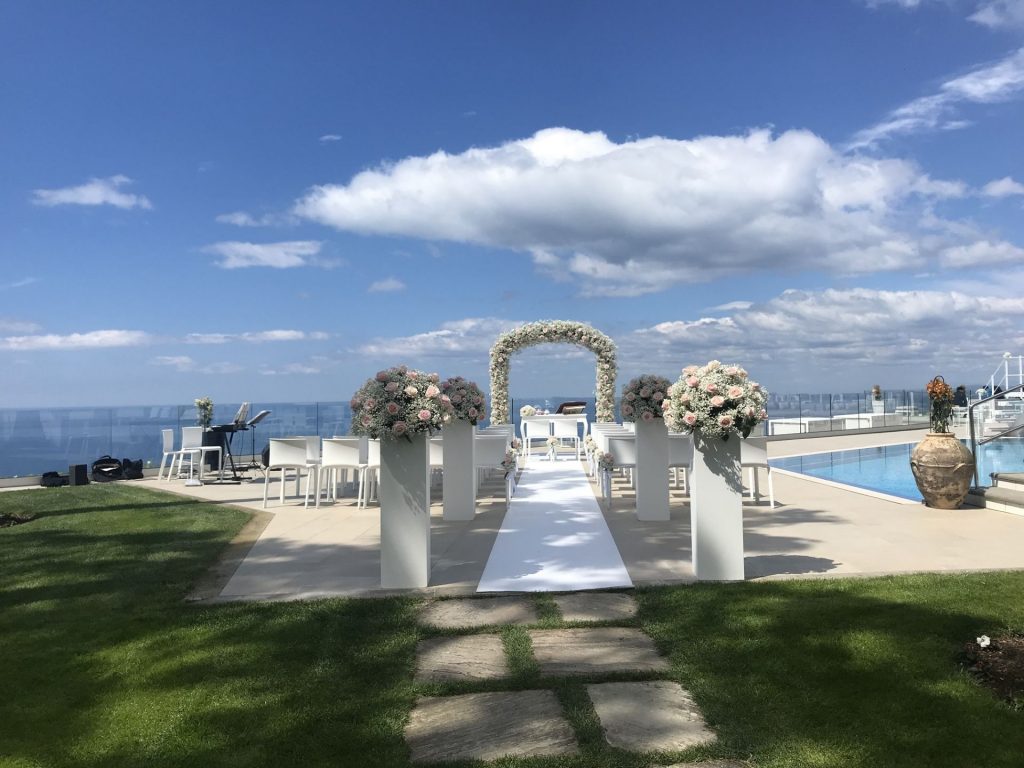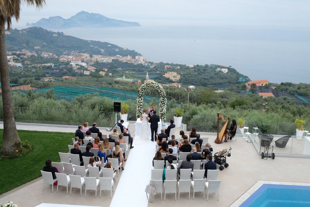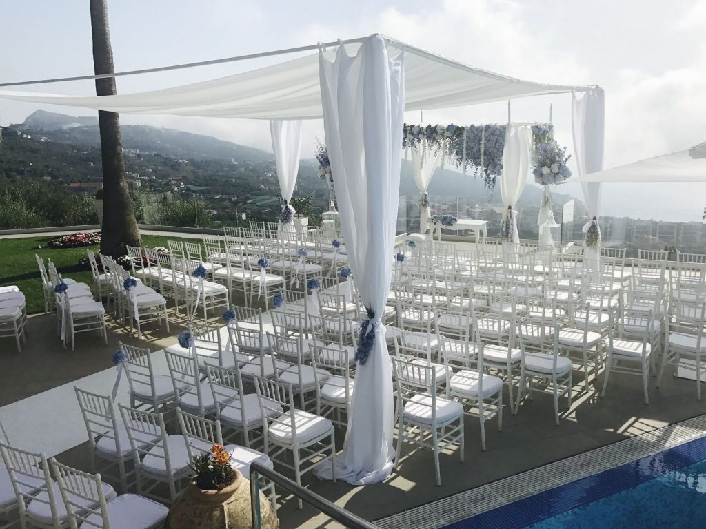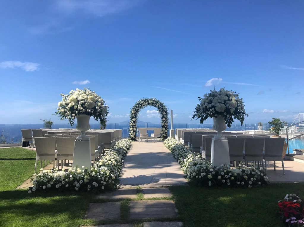 You and your guests will then take a panoramic drive to your reception which takes place in a wonderful villa situated on a privileged spot that boasts a breath taking view of the gulf of Naples, from the Island of Capri to Ischia and continuing on mainland view of Naples city and Mount Vesuvius. The wedding couple can then enjoy a one night stay in the villa’s suite, including breakfast the next day.
