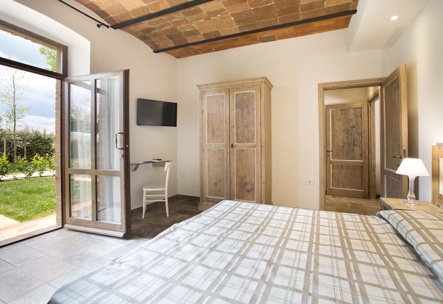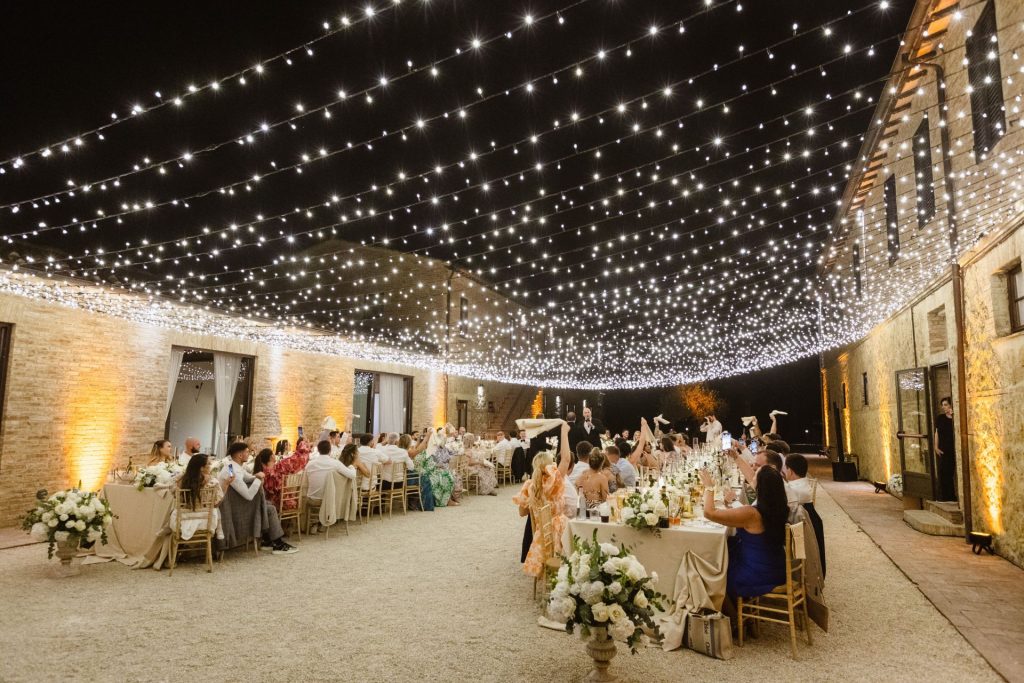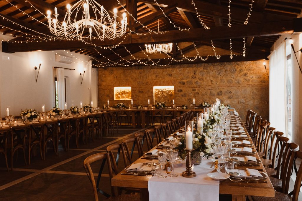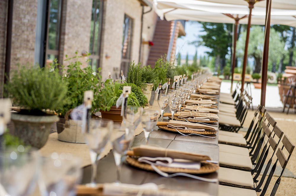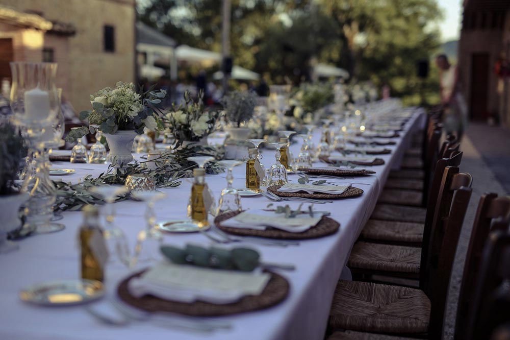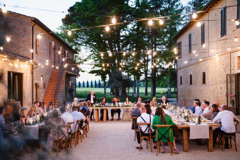 Our proposal includes exclusive hire of a beautifully restored rustic farmhouse for your reception. This wonderful building is surrounded by 500 hectares of meadows and woods and just a few minutes walk from the abbey. You and your guests will enjoy food inspired by traditional Tuscan dishes and made with local produce. Drinks with the meal and an open bar are included. We include accommodation for up to 64 persons for 2 nights in this proposal. The ceremony at the Abbey would be a civil ceremony.