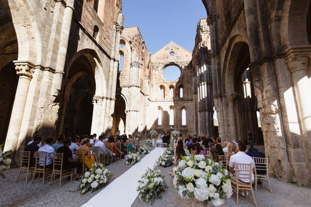 The Tuscan Abbey is a truly unique ceremony venue. Set in the heart of Tuscany’s countryside, approximately 45 minutes from Sienna and surrounded by hills and vineyards, this 1220’s Abbey is surrounded by an aura of mystery and magic which will bring you back in time for your fairy tale wedding. You will exchange your vows in a unique venue steeped in history and your guests will be left speechless by the beauty of the setting.