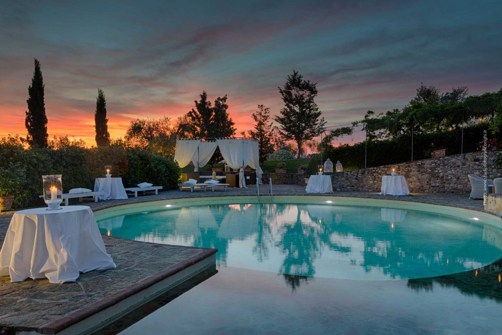 The villa is licenced for legal civil ceremonies which can take place in a choice of areas, but usually set up on the Lemon Tree Terrace, where you can enjoy a 360 degree view of the Tuscan countryside, surrounding vineyards and olive trees.
