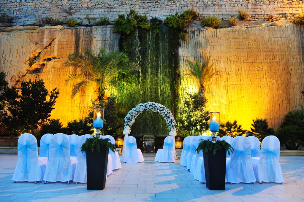 Located in a traditional Maltese town, the Waterfall Gardens is the perfect back drop for your memorable wedding in Malta. Secluded in your very own private venue your wedding party will feel relaxed and amazed with the surrounding setting. Your ceremony will take place aside a breath taking waterfall.
