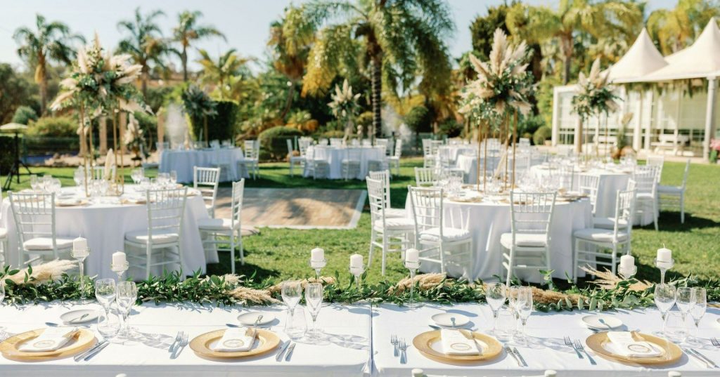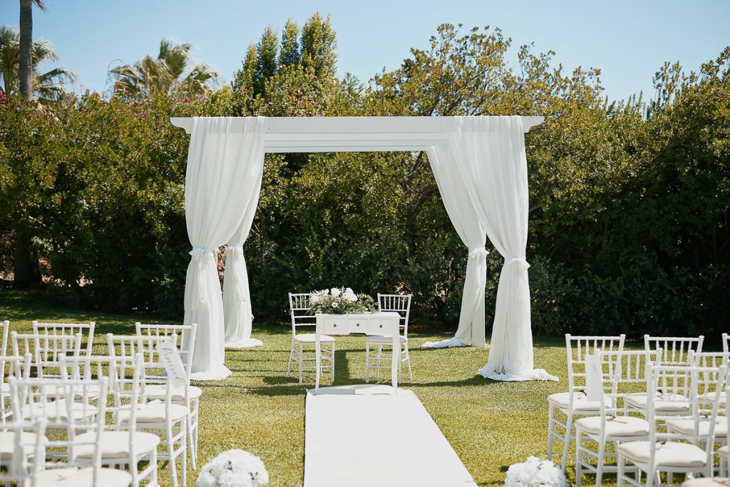 - Set up of Ceremony in the gardens with chiavari chairs and ceremony table