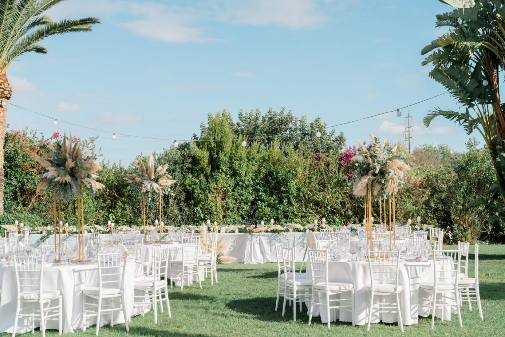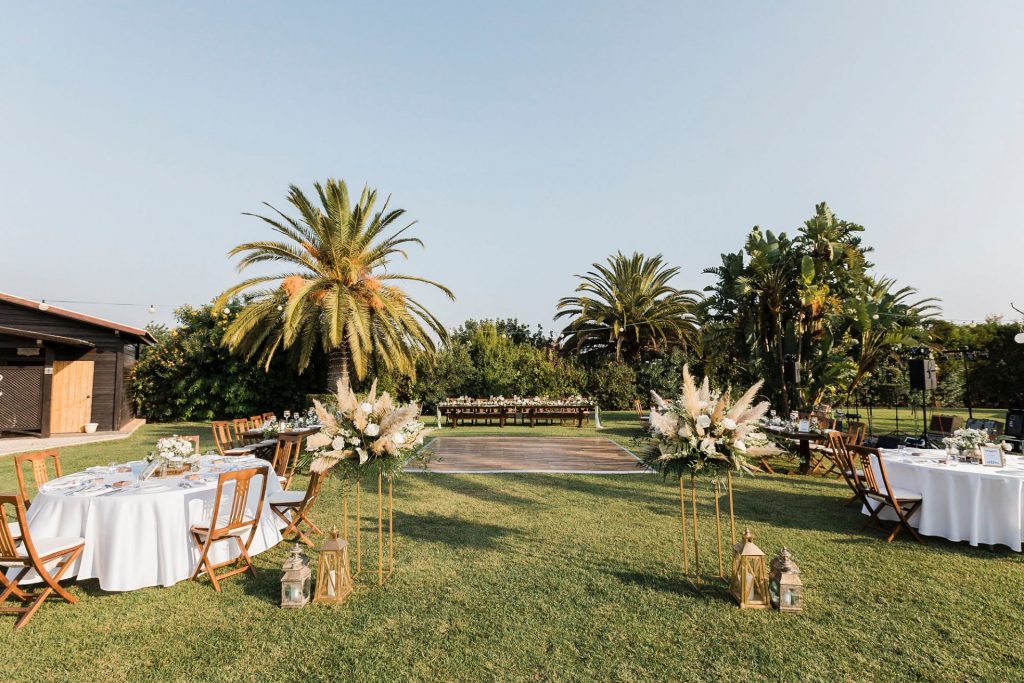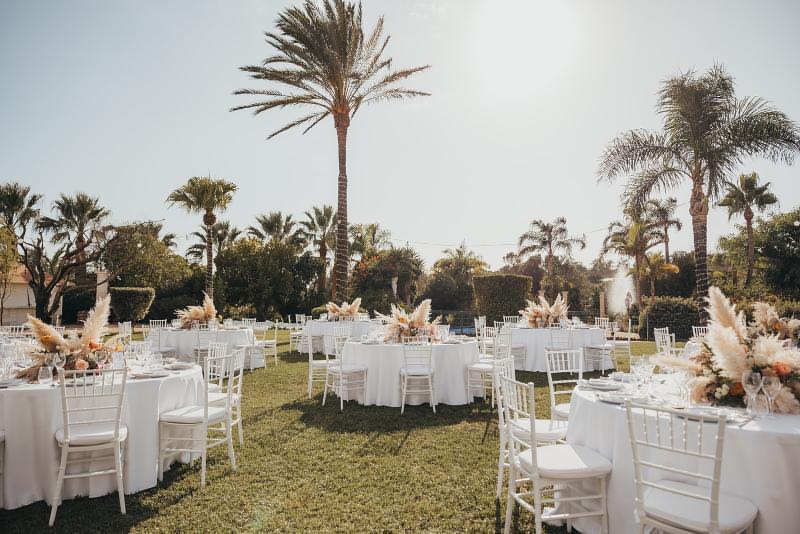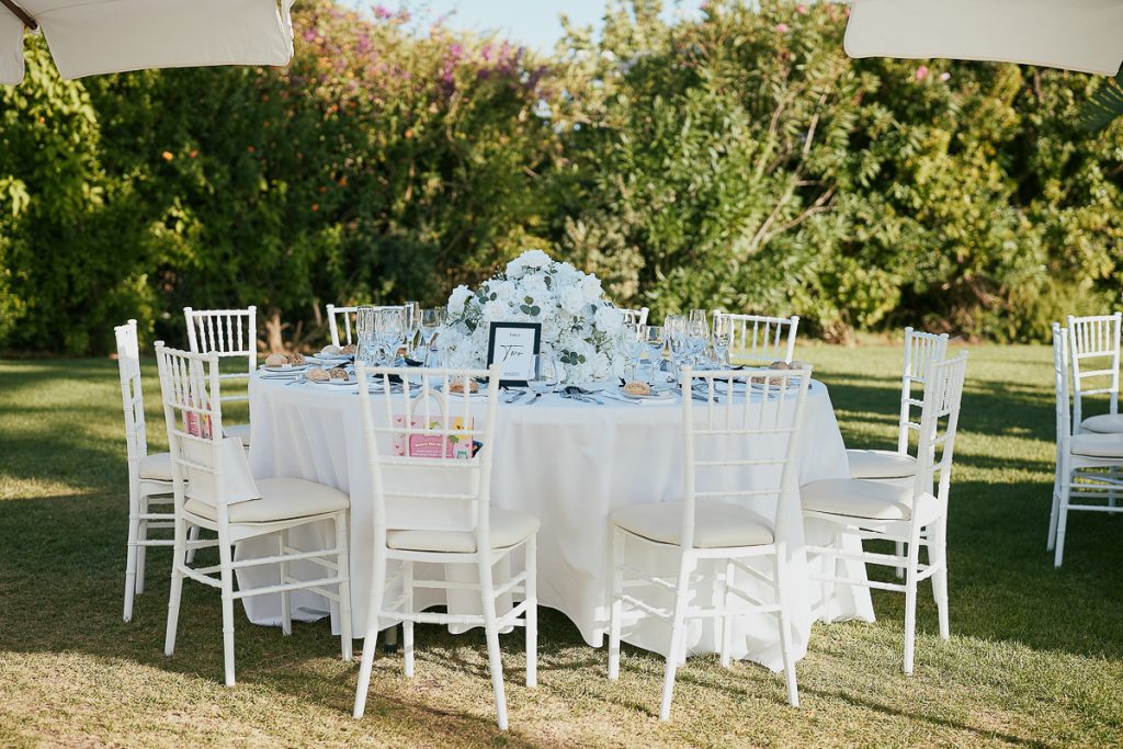 Your ceremony will take place in the romantic garden, set up with a wooden gazebo with drapes and white chiavari chairs. Welcome drinks and canapes are served in the olive garden for 90 minutes whilst the wedding couple has a photo shoot around the grounds.