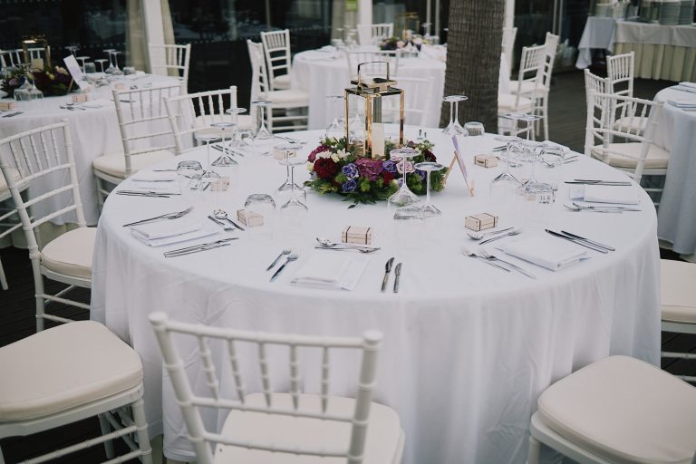 - Standard floral centrepieces on each table (one per table of 10)