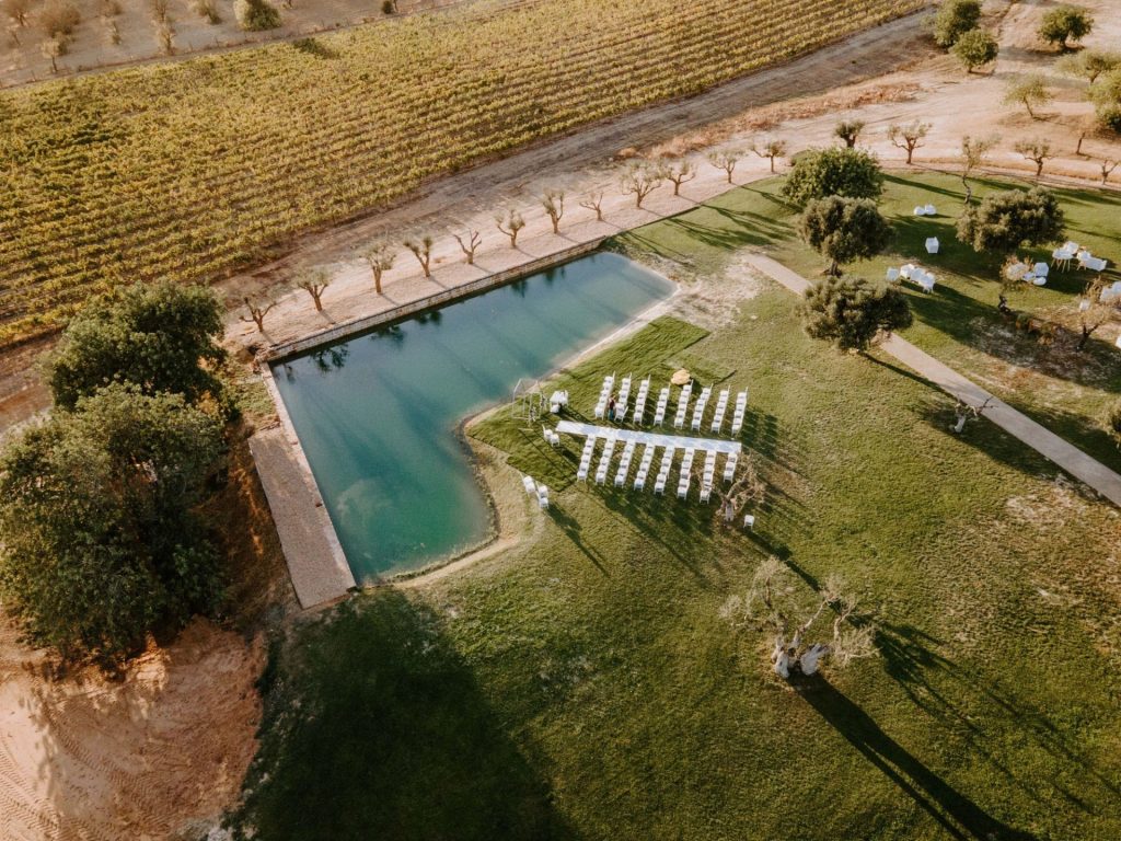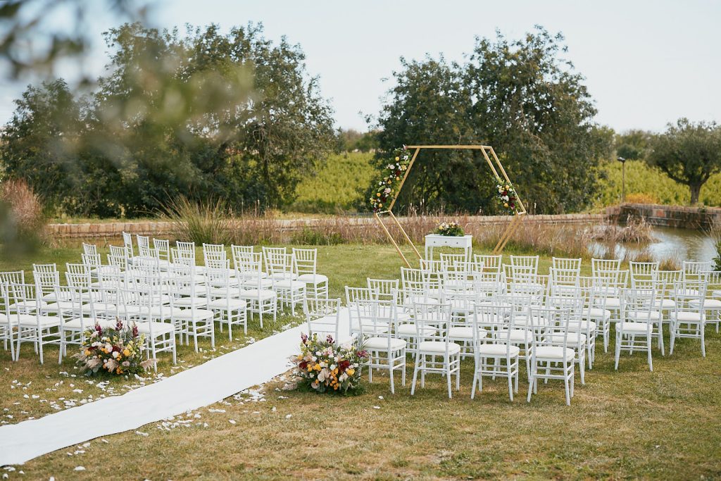 Your ceremony will take place in front of a lake surrounded by vineyards, set up with hexagonal arch, ceremony table with flowers, white chiavari chairs and white carpet. After the ceremony the wedding couple will go for a photo shoot while guests enjoy 90 minutes of drinks and canapes in the gardens.