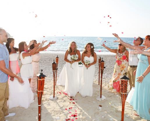 We can also offer same sex ceremonies in Greece, Cyprus & Italy, although these are not legally binding. As many countries, including the UK, only allow the civil partnership ceremony to take place indoors, a same sex blessing abroad allows you to have a ceremony in a more romantic setting such as a beach, a garden or a privately hired venue.